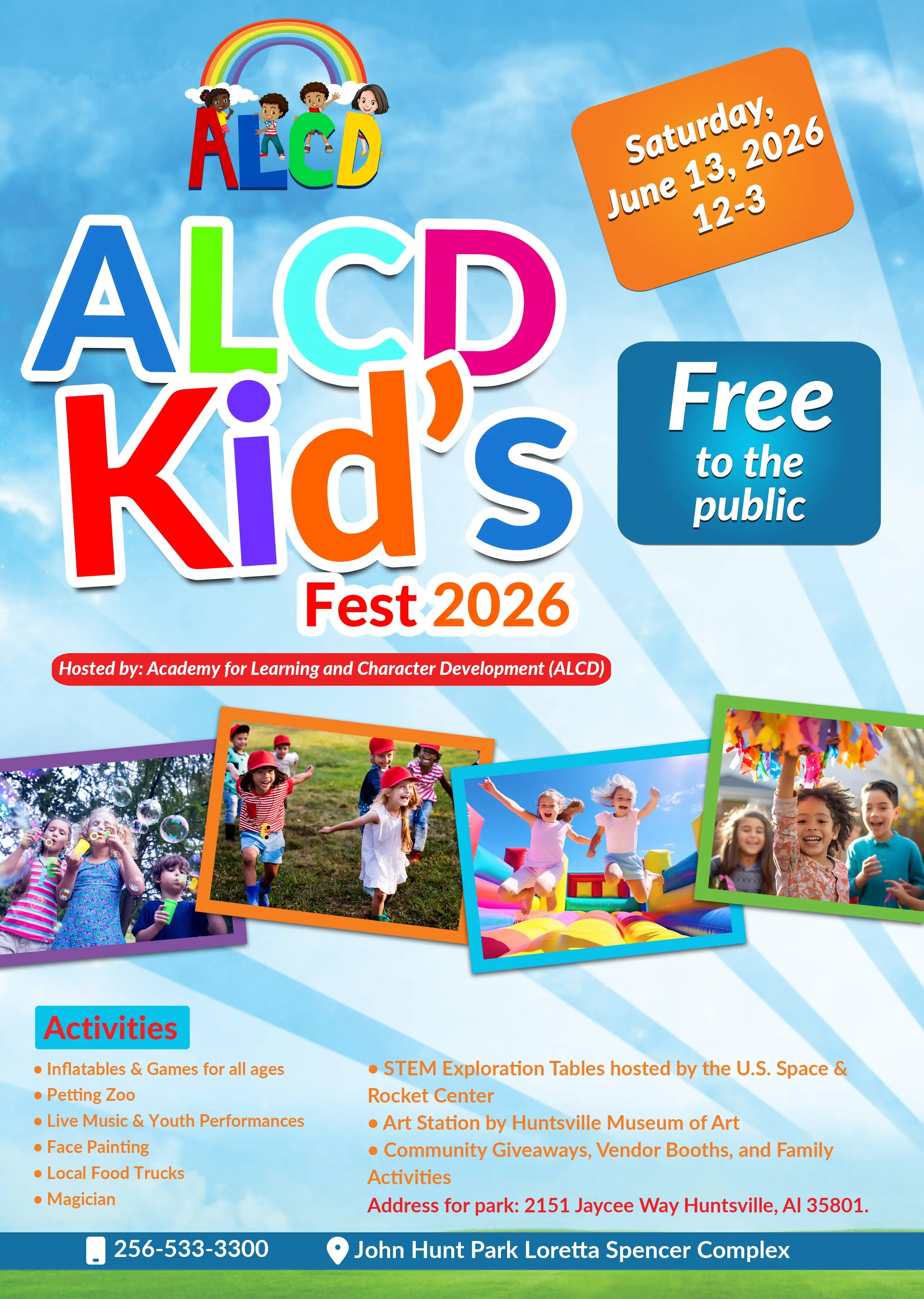 On June 13, 2026, ALCD will host ALCD Kids Fest 2026 at John Hunt Park, a free, family-friendly event serving hundreds of families across Madison County. While Kid’s Fest will include fun activities such as inflatables, games,